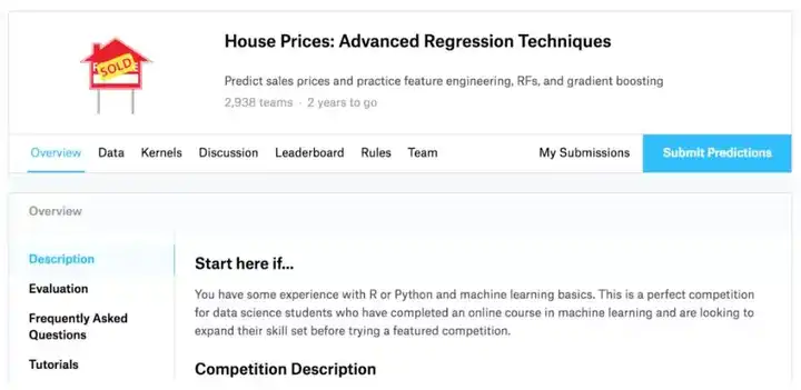 在做完一番研究后,我认为下一步最优的选择是进军 Kaggle,它是谷歌旗下的一个预测模型竞赛平台。没什么比自己动手进行实践更好了!