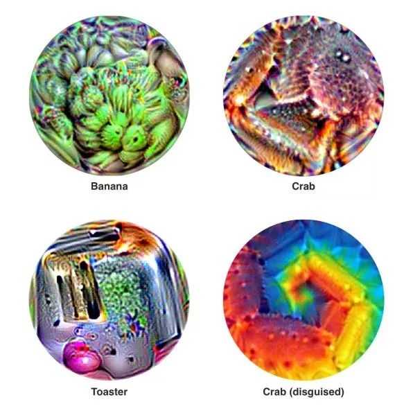 有它在,AI连最简单的物品都分辨不出,比如把“香蕉”认成“烤面包机”。 它就像AI的LSD,迷幻剂,小小一张,就能把计算机骗得晕晕乎乎。