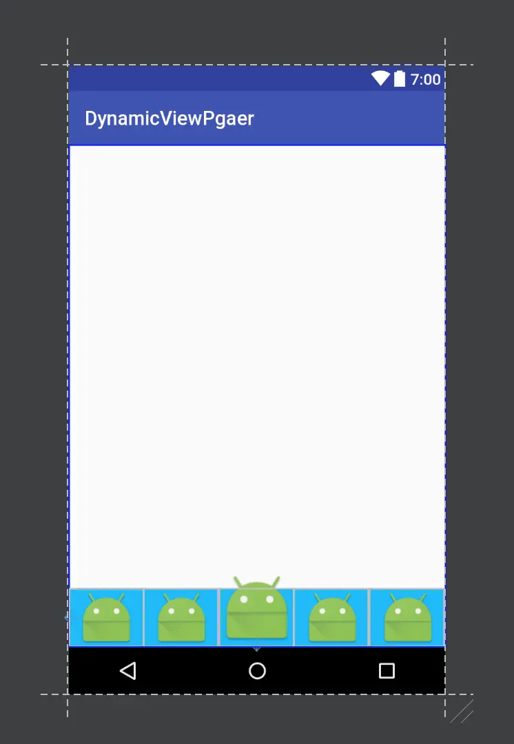 clipChildren这个属性是用来修饰ViewGroup容器的,它可以限制处于当前这个容器里的子控件是否可以越界绘制,默认为true,也就是限制子控件不允许越界,然后再来看下上面的底部Tab栏,我们不需要嵌套布局,只需要在根节点添加
