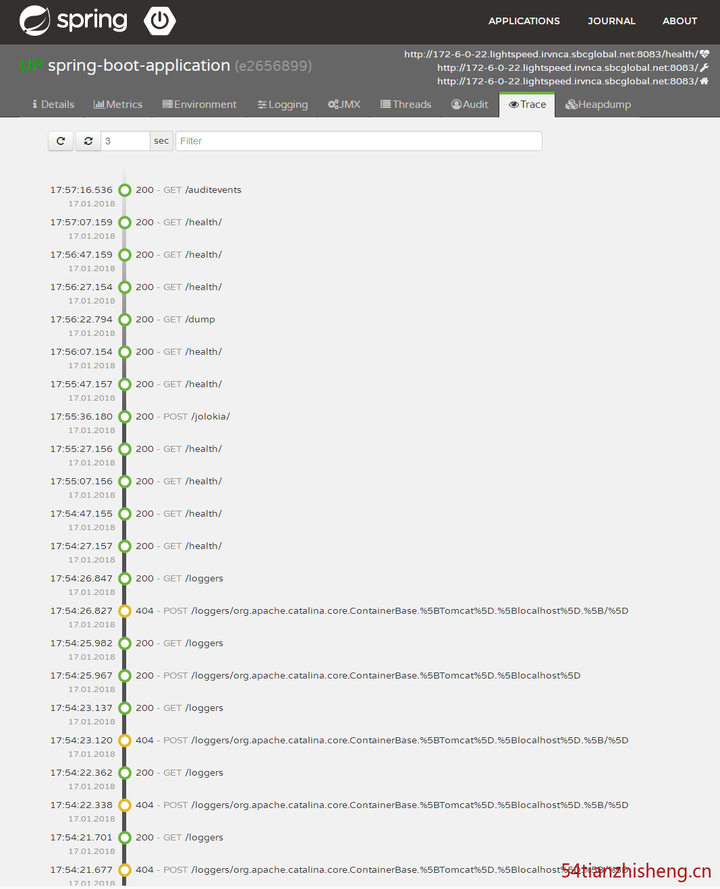 Spring Boot Admin 是一个管理和监控你的 Spring Boot 应用程序的应用程序。 这些应用程序通过 Spring Boot Admin Client(通过 HTTP)注册或者使用 Spring Cloud(例如 Eureka)发现。 UI只是 Spring Boot Actuator 端点上的一个 AngularJs 应用程序。