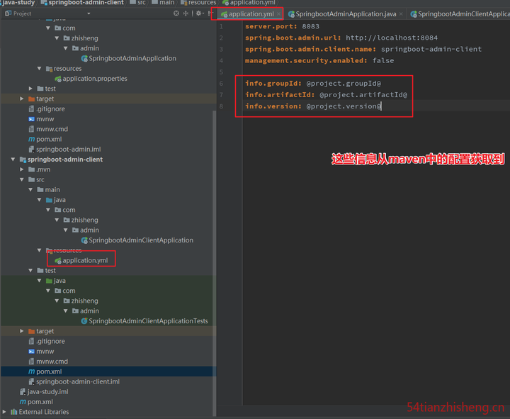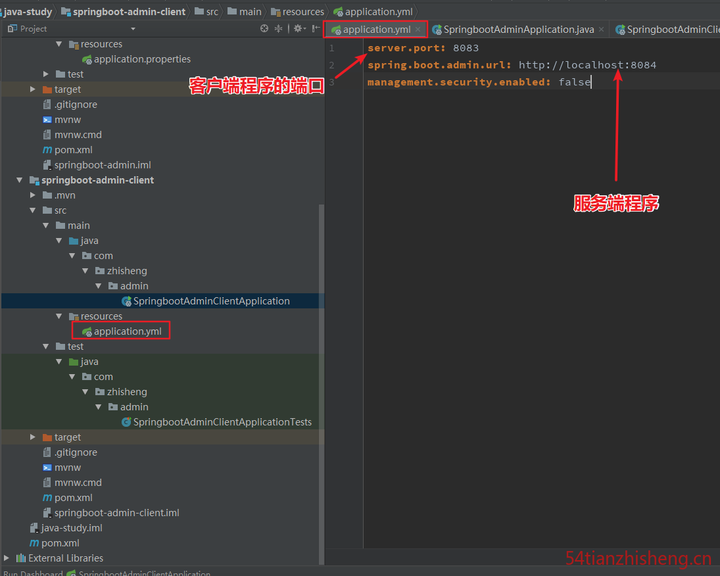 spring.boot.admin.url=http:localhost:8094 用于将当前应用注册到 Spring Boot Admin。