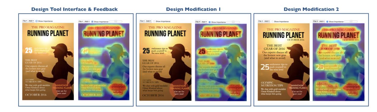 改变字体颜色,大小,位置,都会影响视觉焦点,集成到设计工具中,可以实时地告诉用户,设计图的焦点在哪里,达到辅助设计的目的。