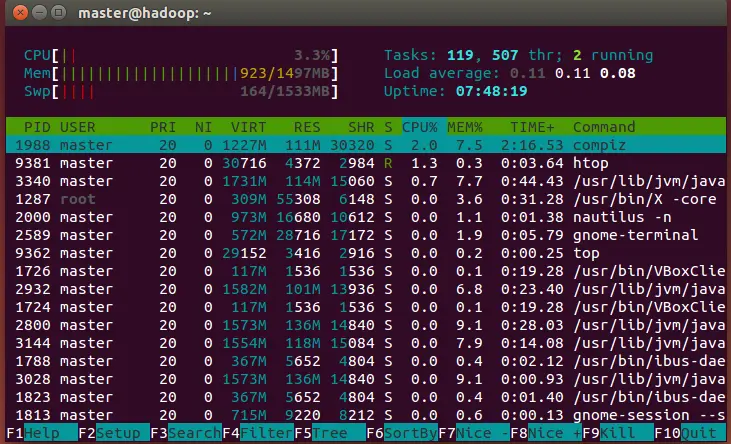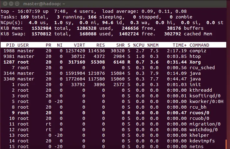 双 11 剁手后,使用 hadoop 伪分布式进行单词统计时,突然想查看 Ubuntu 系统中内存的占用情况。