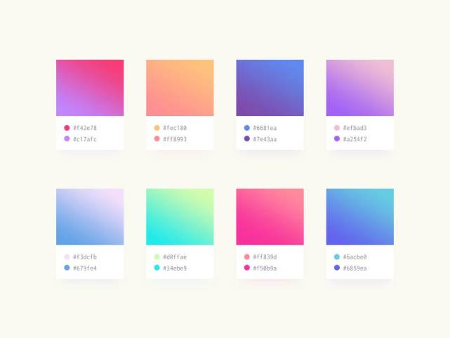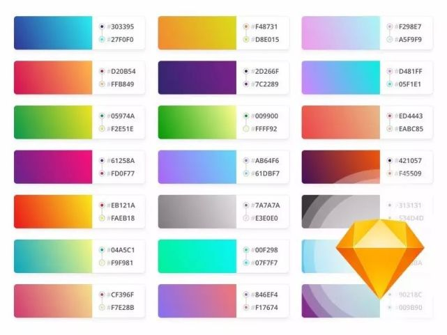 2017-09-07 来源:设计货今天和大家分享全网最全的渐变配色源文件,源文件的格式也有很多种比如 PSD, Sketch, XD以及可直接复制成一段 CSS 渐变代码,如此一来,设计师们就可以很方便的使用这个配色方案了。