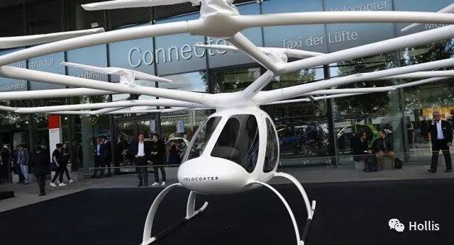 在今年的CES会展上,世界上第一架纯电动两座直升机Volocopter亮相。准确的说,Volocopter从本质上来讲更像是一款飞行汽车,其被设想、设计和制造成首批无人空中出租车之一。
