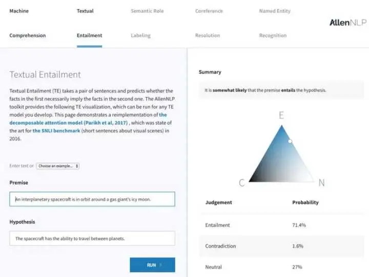 Allen Institute for AI 发布了 AllenNLP,其中囊括多套业界领先的自然语言处理模型——包括面向标准自然语言处理任务的参考实现方案以及易于使用的 Web 演示素材。