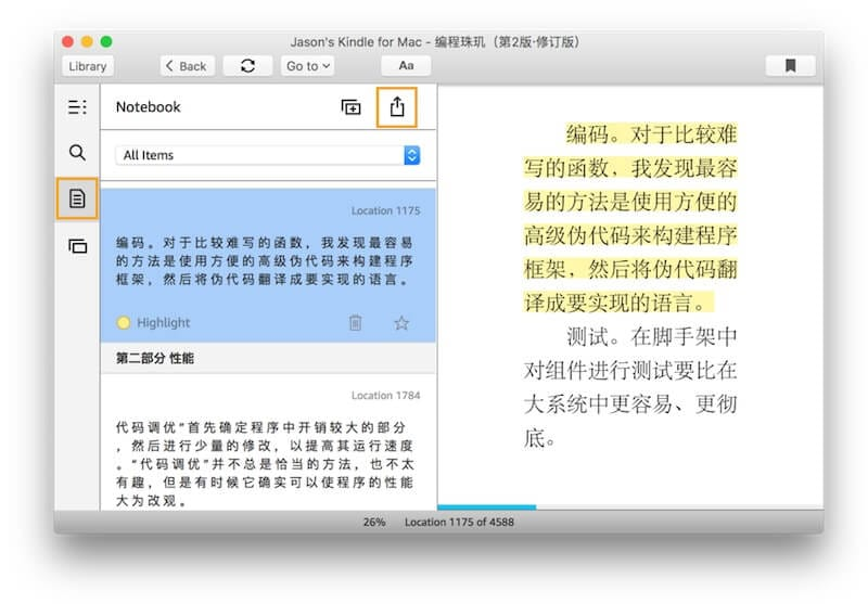 - 使用 Kindle for macOS 继续下面的操作(因为效率高)