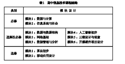高中信息技术选择性必修课程是根据学生升学、个性化发展需要而设计的,包括“数据与数据结构”“网络基础”“数据管理与分析”“人工智能初步”“三维设计与创意”“开源硬件项目设计”六个模块。