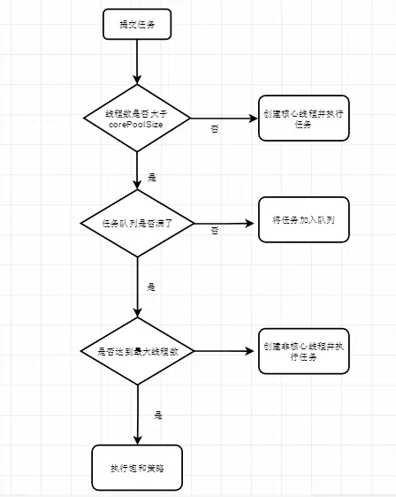 (1)执行execute提交任务,如线程数小于核心线程数,则创建核心线程并执行任务。否则加入阻塞队列。