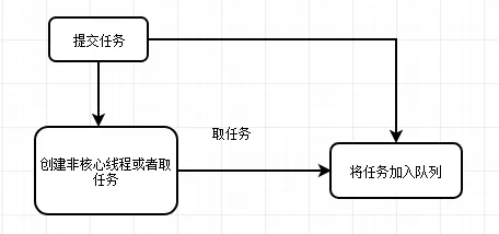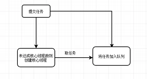 (1)执行execute提交任务,如无核心线程,创建一个核心线程执行任务;如有线程在运行,则将任务加入到队列,等核心线程处理完当前任务,再从队列中取任务处理。