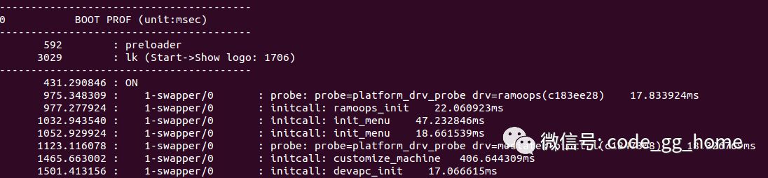 进入shell,cat /proc/bootprof