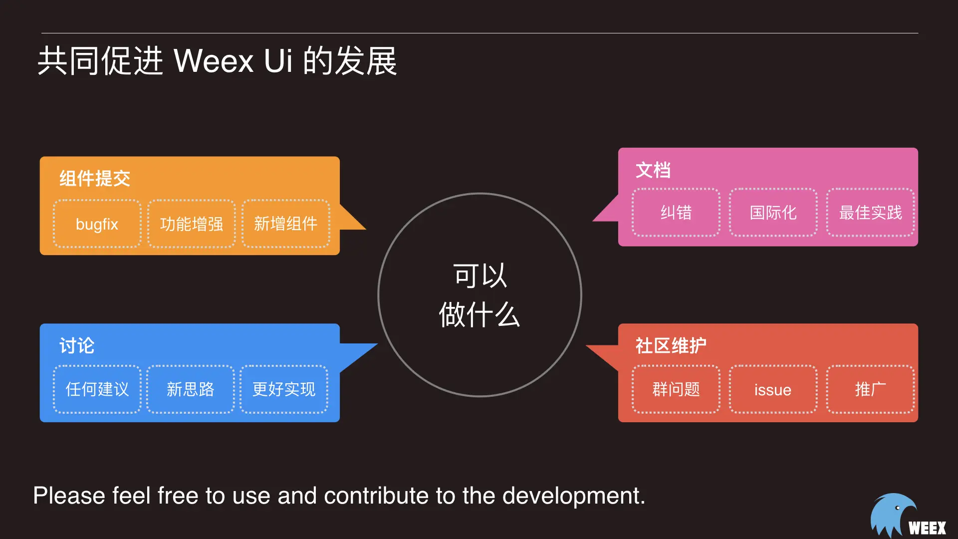 其实更多的是想大家一起参与进来,共同促进我们 Weex 的发展。