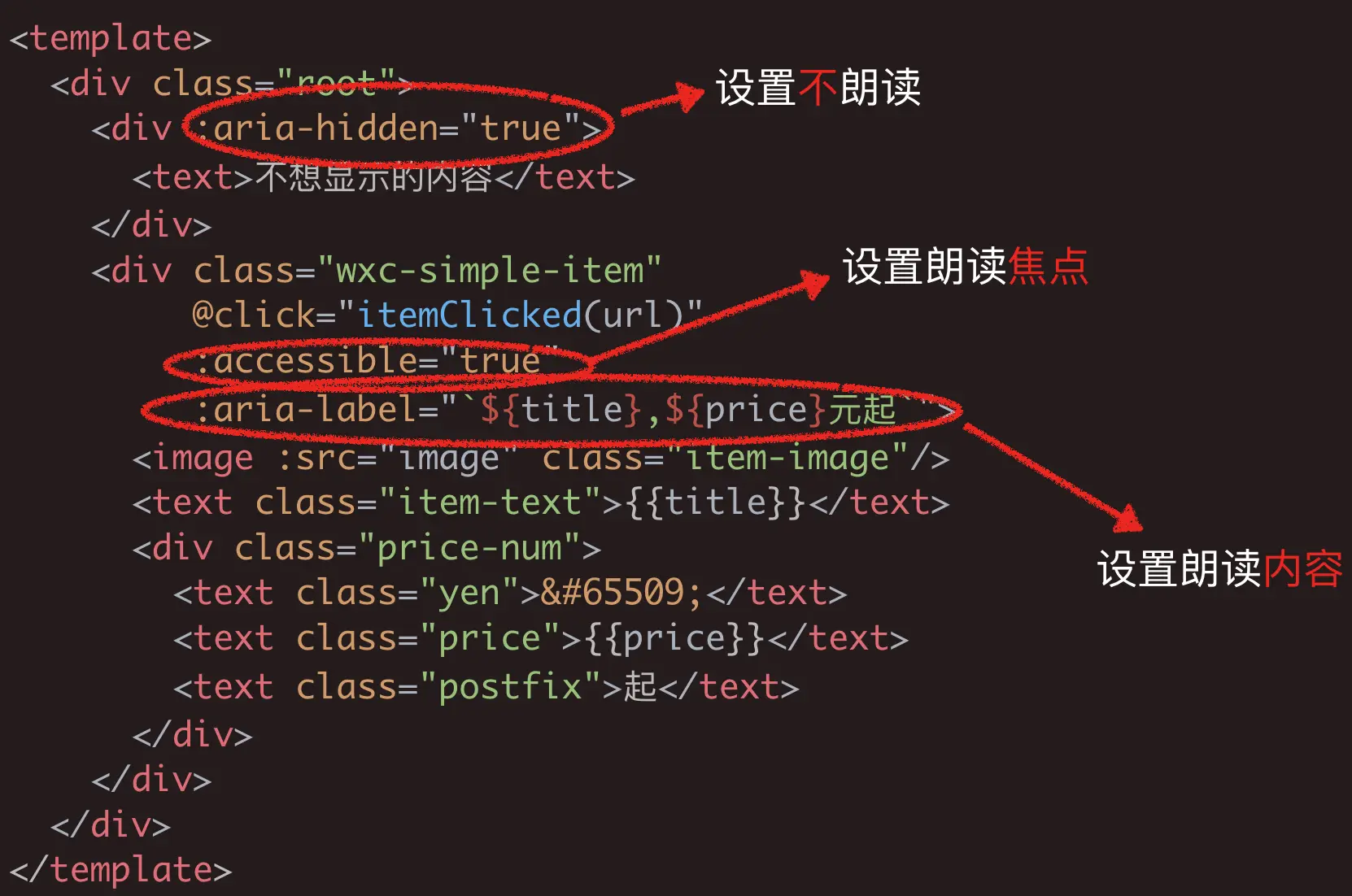 无障碍在Weex实现起来是很简单的,譬如如下实现: