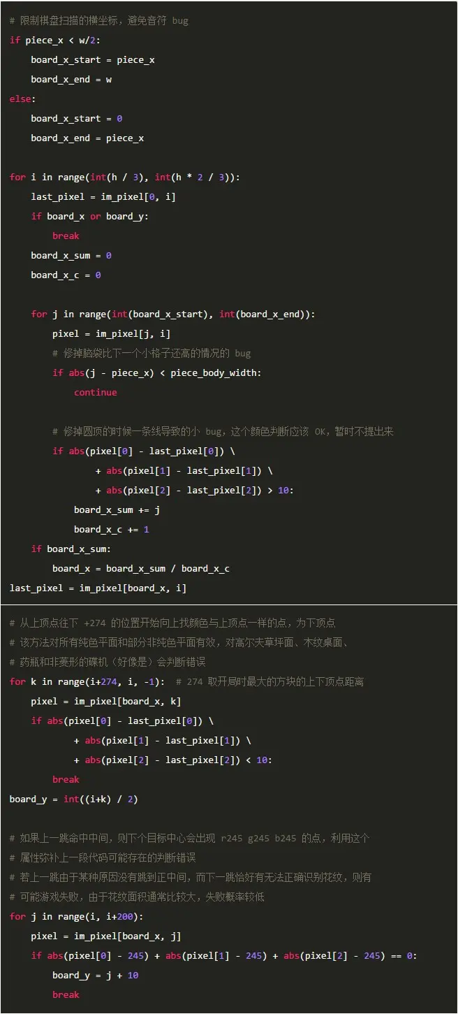 总结一下,目前这个方案基本没有太大问题,但如果跳一跳游戏把背景改成了非线性渐变,或随机飘落一些物体,或棋盘表面更加复杂,那这里的算法就基本不可用了。
