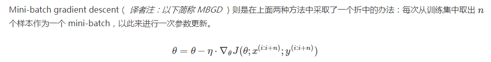 然后我们在梯度的反方向更新模型参数,而学习率决定了每次更新的步长大小。BGD 对于凸误差曲面(convex error surface)保证收敛到全局最优点,而对于非凸曲面(non-convex surface)则是局部最优点。