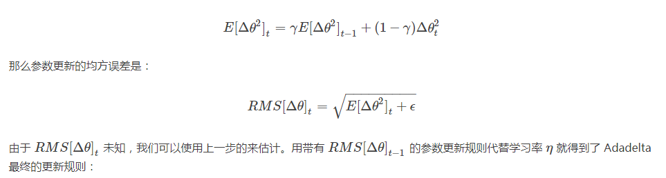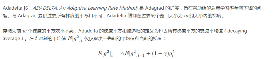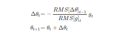 使用 Adadelta 时我们甚至不需要指定一个默认的学习率,因为它已经不在更新规则中了。