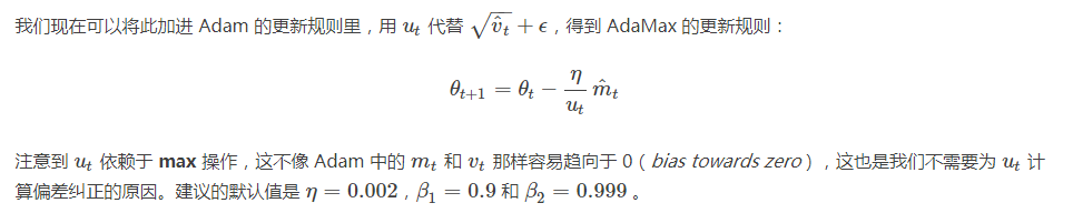 总的来说,RMSprop 是 Adagrad 的一种扩展,用来解决后者学习率逐渐递减的问题。它和 Adadelta 非常像,除了 Adadelta 在更新规则的分子上使用参数更新的 RMS (译者注:均方误差)。Adam 最终在 RMSprop 的基础上加了偏差修正和动量。在这方面,RMSprop 、Adadelta 和 Adam 非常相似,在相似的环境下也表现地一样好。Kingma 等人 [15,Adam: a Method for Stochastic Optimization] 表示随着梯度越来越稀疏,Adam 的偏差修正使其略微优于 RMSprop 。在这个方面总体上来说 Adam 可能是最好的选择。