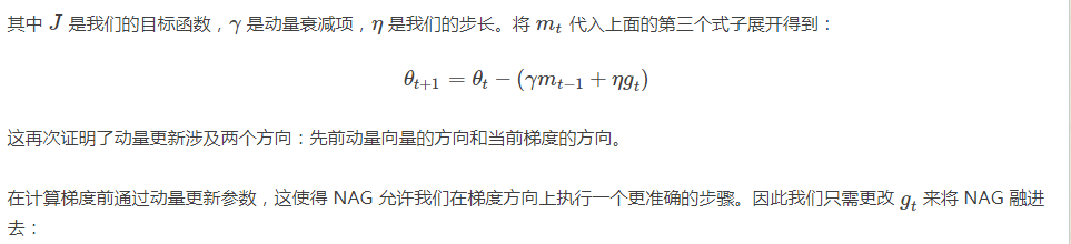 可以在 这里 查看对 NAG 的另一种直观解释,此外 Ilya Sutskever 在他的博士论文中也给出了详细解释 [9,Training Recurrent neural Networks] 。