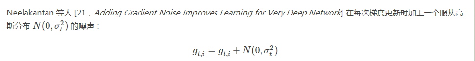 他们表明添加这个噪声使得网络对较差的初始化更具有鲁棒性并且尤其对训练深度和复杂的网络很有帮助。他们怀疑添加的噪声使得模型有更多机会逃离和找到新的局部最优点,这在深度模型中很常见。