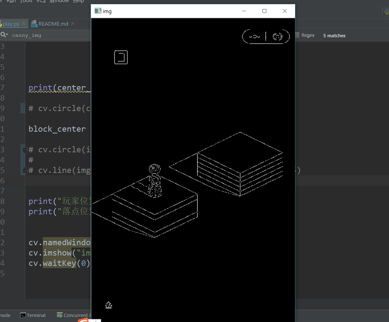 接下来就要识别落脚点了,但是蹲蹲千变万化,有方形的,有圆形的。所以刚才的模板识别就用不上了,即使使用的话成功率也很低,这个时候就需要用到边缘检测了。