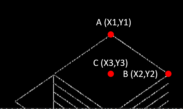 得到了A,B点的坐标,整个形状的中点 (X3, Y3)其实就是 (X1,Y2)。