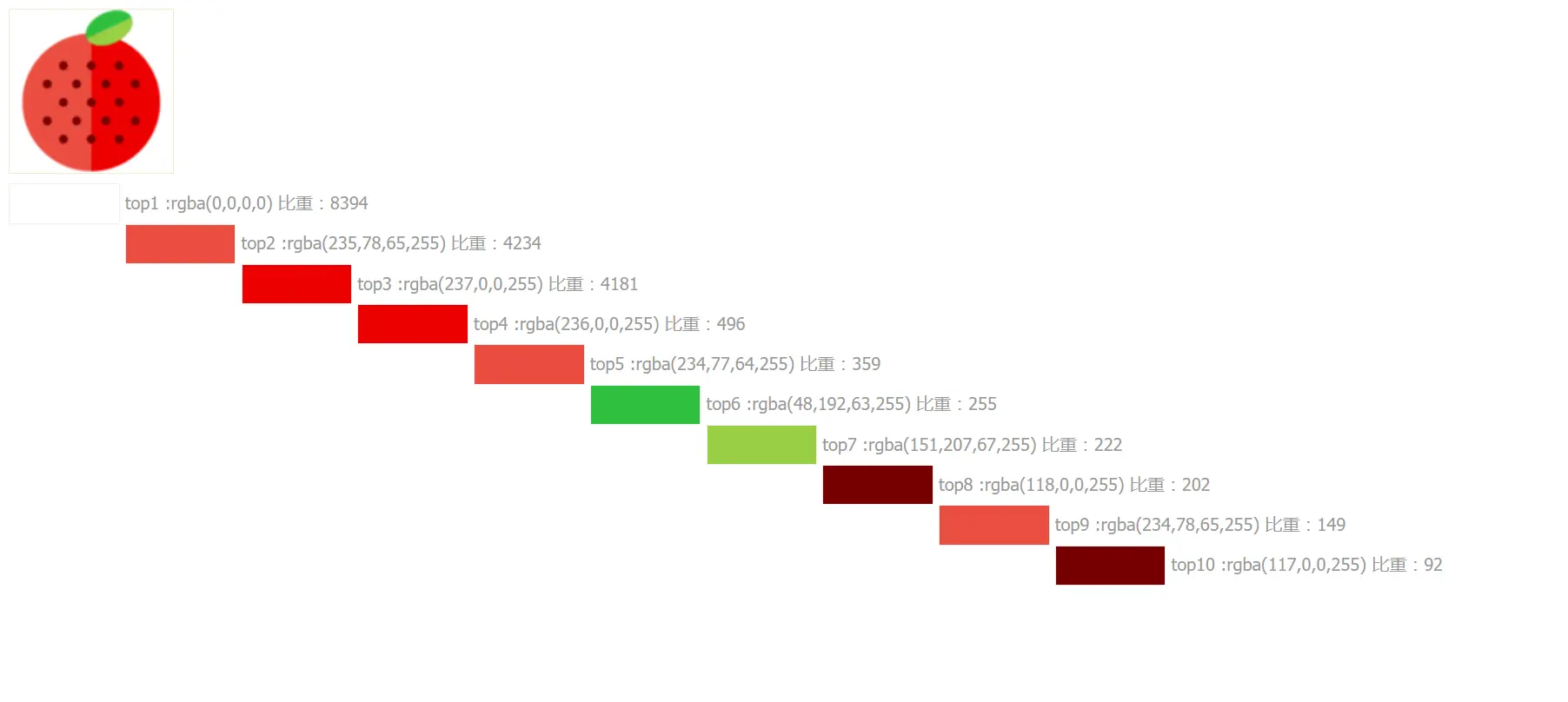 这个问题思路很清晰,第一步,拿到图片的数据;第二步,根据色值进行聚类;第三步,对聚类结果排序。所以这次就是根据这个思路去实现。