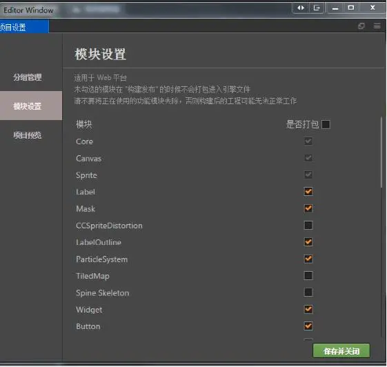 措施1:引擎定制裁剪去掉不必要的模块减少引擎体积,这块通过设置引擎模块即可。
