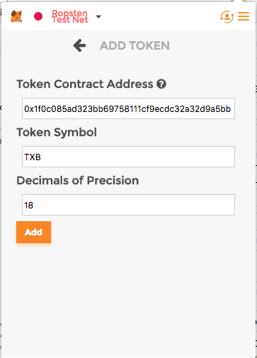 打开Metamask界面,切换到TOKENS,点添加合约,出现如下对话框: