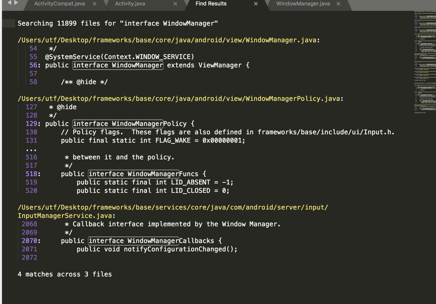 - 搜索以后会出现findResults文件,会出现很多满足搜索条件的类的路径地址,一般第一个就是较精准的。