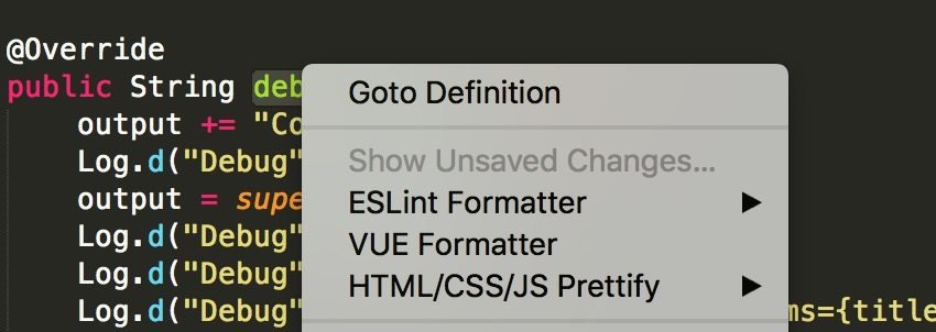 - 选中需要快速的方法,类名稍等会就会出现该方法,类被使用的地方,或者右键选择Goto Definition。