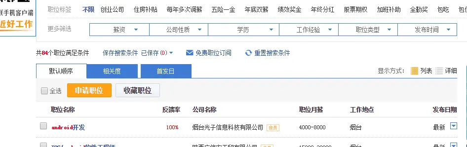 http://sou.zhaopin.com/jobs/searchresult.ashx?jl=烟台&kw=android&p=1&isadv=0