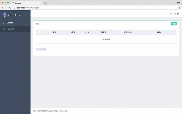 Gerapy 的核心功能当然是项目管理,在这里我们可以自由地配置、编辑、部署我们的 Scrapy 项目,点击左侧的 Projects ,即项目管理选项,我们可以看到如下空白的页面: