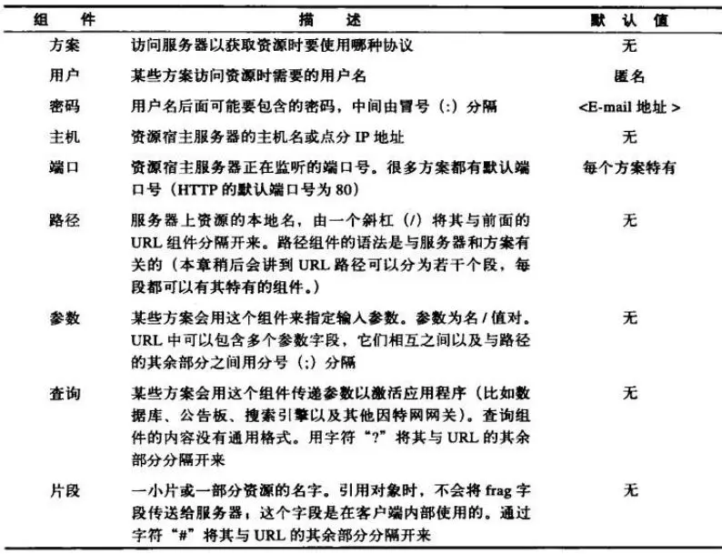 开始时我们输入的是URI(统一资源标识符,Uniform Resource Identifier),我们用的比较多的是URI的一个子集叫统一资源定位符(URL,Uniform Resource Locator)。 URL组成