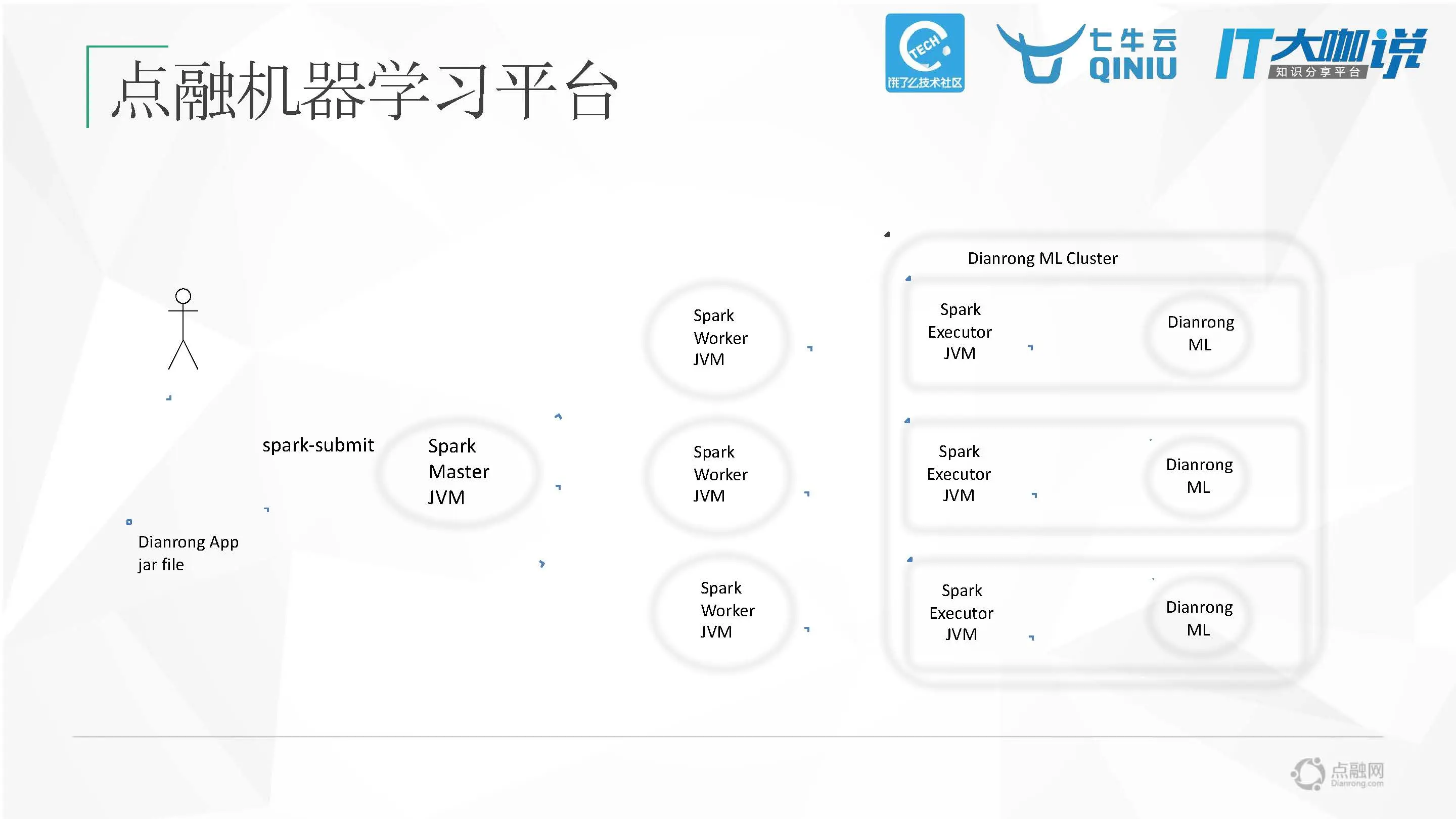 我们的点融机器学习平台是基于一个spark集群,在开源的框架上自己加了一些二次开发,在其中加入了我们觉得重要的一些特点。