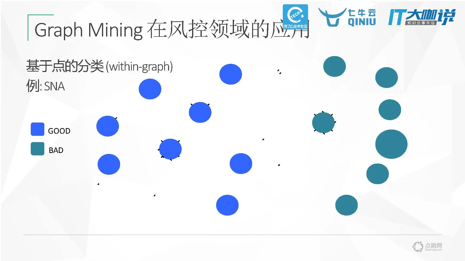假如把每个用户三度人脉所关联的点全部抠出来,这样每个人的三度人脉都是一个很小的图。这样可以根据历史数据标注出哪些小图标注成好的,哪些标注成坏的。机器学习完全可以通过小图的结构进行学习。