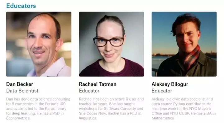 - Aleksey Bilogur,他是一位数据专家和 Python 开源项目贡献者。他为纽约市长办公室和纽约大学 CUSP 工作,拥有数学学士学位。目前主要负责数据可视化课程。