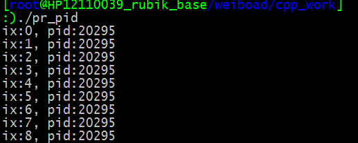 printf("ix:%d, pid:%d\n", i, getpid());