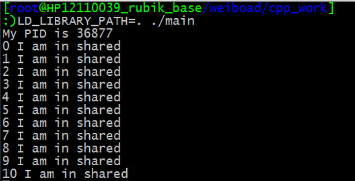 printf("%d I am in shared\n", i++);
