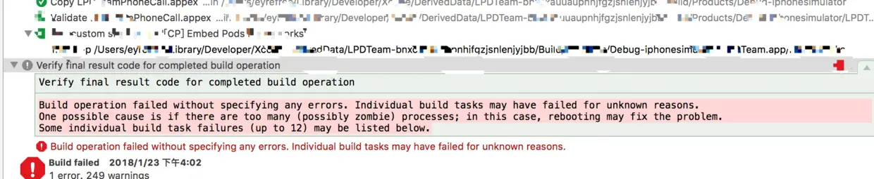 起因:前段时间在给某 App 做组件化,发了一堆奇怪的 CocoaPods 库,今天到了某个版本发布,然后将这些库引入了主工程,用测试机进行编译 / 打包 / 提测,嗯,没有任何问题,开心。然后发布系统编译打包,嗯,失败了。编译失败嘛,很正常,查日志啦。唉,打开日志发现,并没有返回任何错误日志...啥情况?调了一天,无果,找 CI 大佬们帮忙解决,然后发现打包系统是用直接下载 zip 压缩包的方式进行编译的,没有走 git,我们心想:有什么不同么,本地都能编译成功啊?然后试了试,卧槽,真的编不过,然后为啥不返回错误信息的问题也找到了,因为 Xcode 真的没有返回错误信息啊喂!