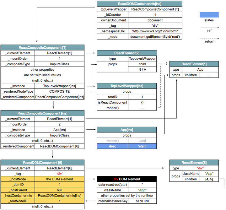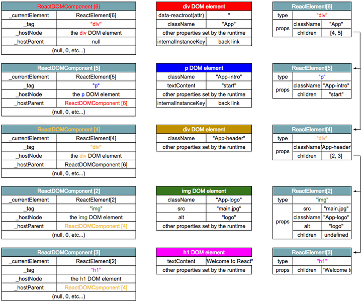 ReactDOMComponentTree.precacheNode(this, el); // scr: --------> doubly link (._hostNode & .internalInstanceKey)