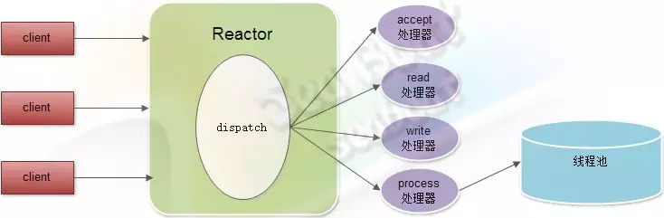 但事实上,Reactor模式有个不容忽视的缺点,比如处理耗时较长操作的处理器有可能会影响到整体的处理能力,所以需要在process处理器中引入一个线程池,并将比较耗时的操作放到线程池中处理,从而使得Reactor的整体运转处于正常状态。