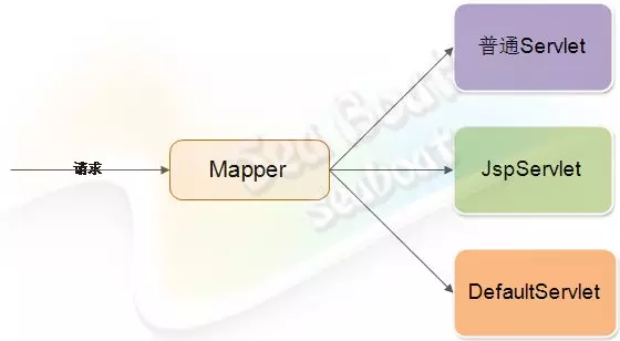 根据请求资源的不同种类,可以把Servlet分成三种类别,比如普通Servlet、JspServlet和DefaultServlet。其中不同类别的请求资源会通过Mapper映射到对应类型的Servlet上。