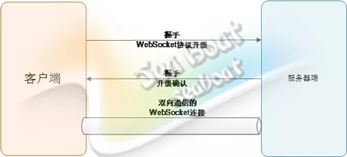 首先,客户端先发送一个“WebSocker协议升级”的握手包到服务器端;如果服务器端支持WebSocket协议,则会返回一个“升级确认”的握手包。这时就成功建立起了一条可双向通信的WebSocket连接,可以使用WebSocket协议的数据帧格式来发送消息。