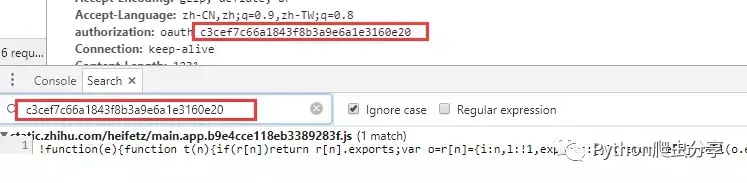 我们在chrome内,直接按ctrl+shift+f(全局搜索,搜索js,css这些),可以看到已经搜索到了,并且是直接写在js里面的,然后重新随便换个账号再抓一次包,发现authorization 的值还是固定的,所以说明authorization 是直接写在js里面的,不是动态修改的(那么authorization 的值我们就已经找到了)