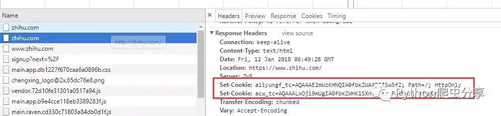 在登陆之前,就发现cookie的值不为空,说明肯定打开网页后就有set-cookie的操作了,我们想验证的话,先打开一个无痕浏览器(主要是为了把之前的cookie全部清空,避免干扰),然后打开zhihu.com,我们发现他有几次set-cookie的动作