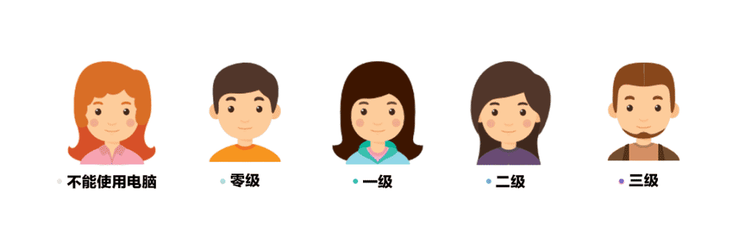 如果的目标用户非常广泛,最安全的做法是用一级水平来衡量他们(即便把不会用电脑的人剔除考虑范围,也有 14% 的人水平在一级之下)。