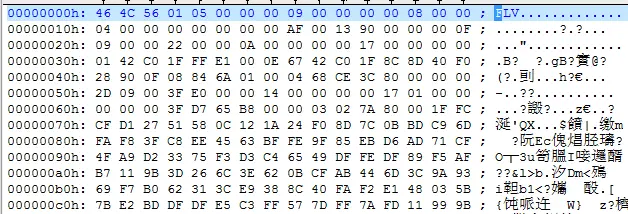 - 文件标识(3B):总是为”FLV”,0x46 0x4c 0x56