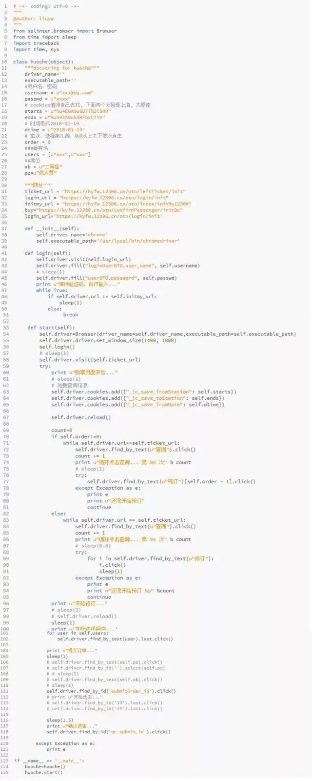 2017年时间飞逝,转眼间距离2018年春节还有不到1个月的时间,还在为抢不到火车票发愁吗?作为程序员的我们撸一个抢票软件可好? ...