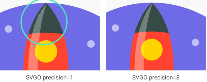SVGO是一个优化SVG的基于节点的工具。 SVGO可以通过降低定义中的数字精度来减小文件大小。 点之后的每个数字都会添加一个字节,这就是为什么更改精度(位数)会严重影响文件大小的原因。 要非常小心地改变精度,因为它可以直观地影响你的形状的外观