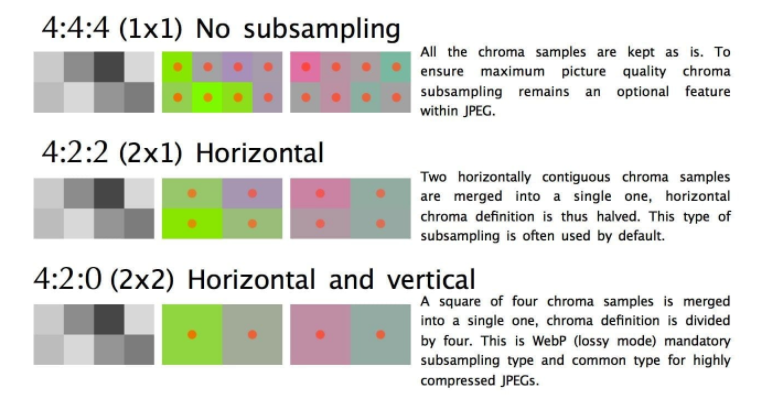 通过减少色度分量中的像素,可以显着减小色彩分量的大小,最终减小字节大小。